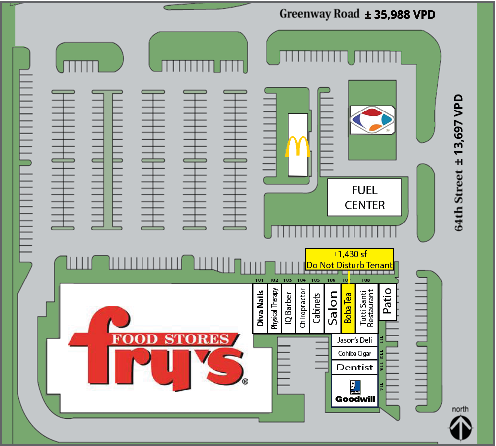 - Fry’s Marketplace-anchored neighborhood center near upscale Scottsdale Quarter & Kierland Commons.