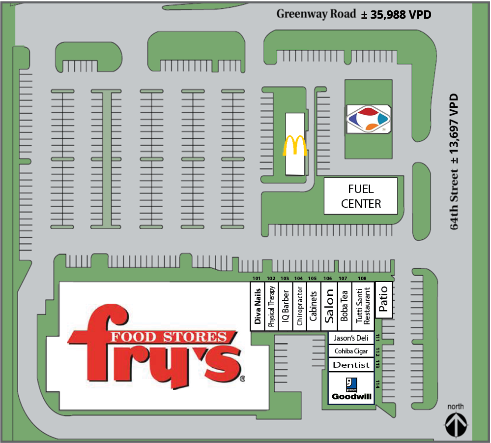 - Strategic location at high-traffic Greenway Rd & 64th St intersection.