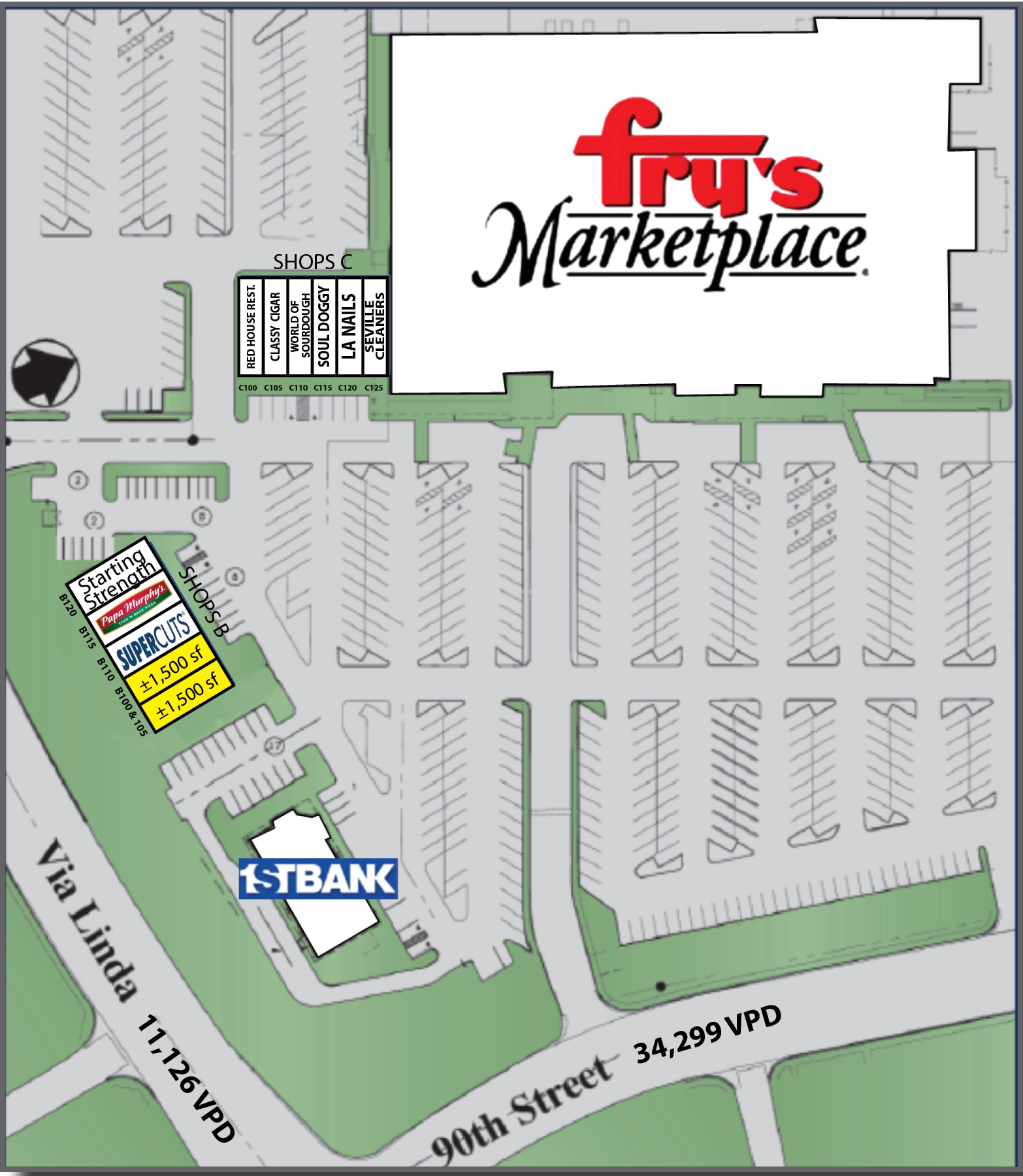This Fry’s marketplace anchored neighborhood center is located on a high traffic intersection with