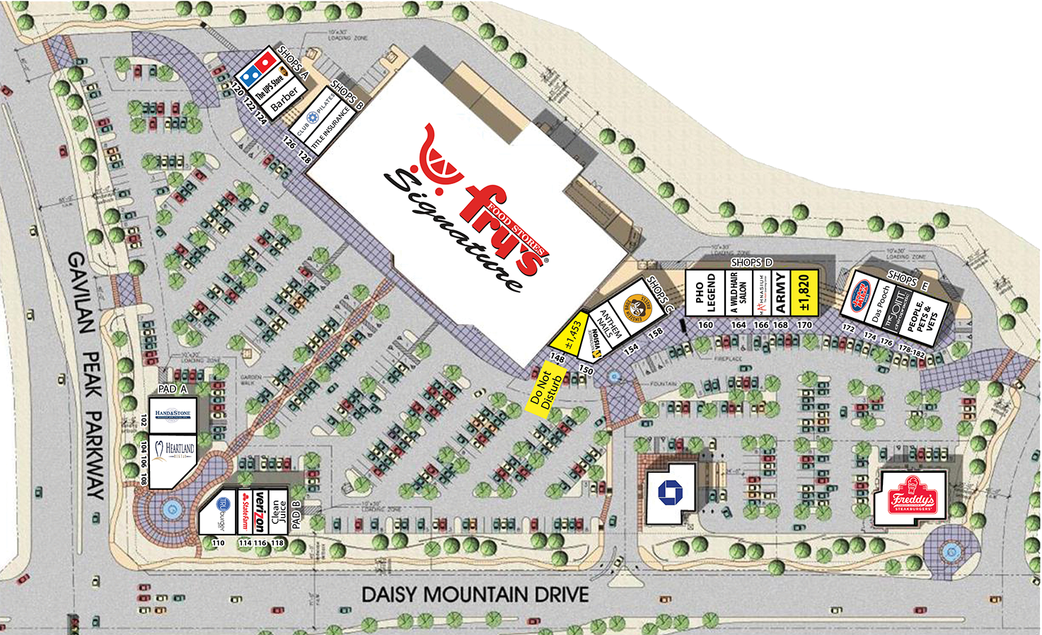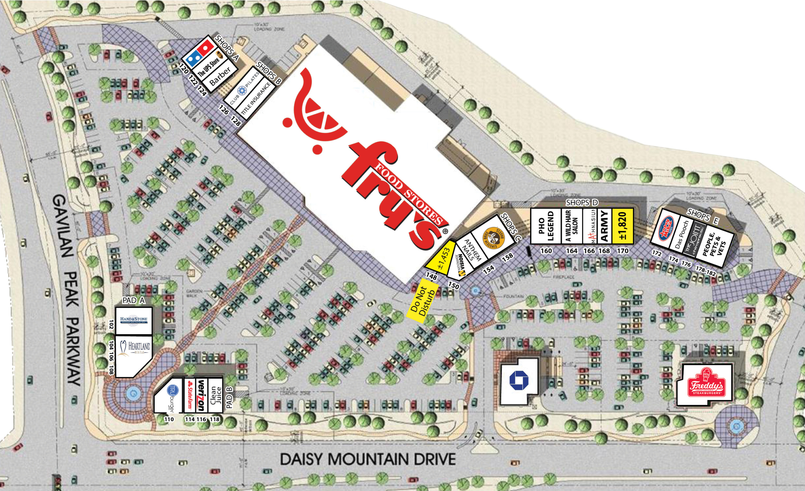The Fry’s Signature concept includes furniture, home decor, a wine shop, organic produce, floral, a coffee shop and an expanded deli. This location is part of the Anthem master planned community consisting of 5,920 acres with an estimated population of over 40,000 people. Anthem was voted “Best Master Planned Community in America” by the National Association of Home Builders. It is the only grocery anchored center at the entrance to Anthem at Daisy Mountain Drive.
