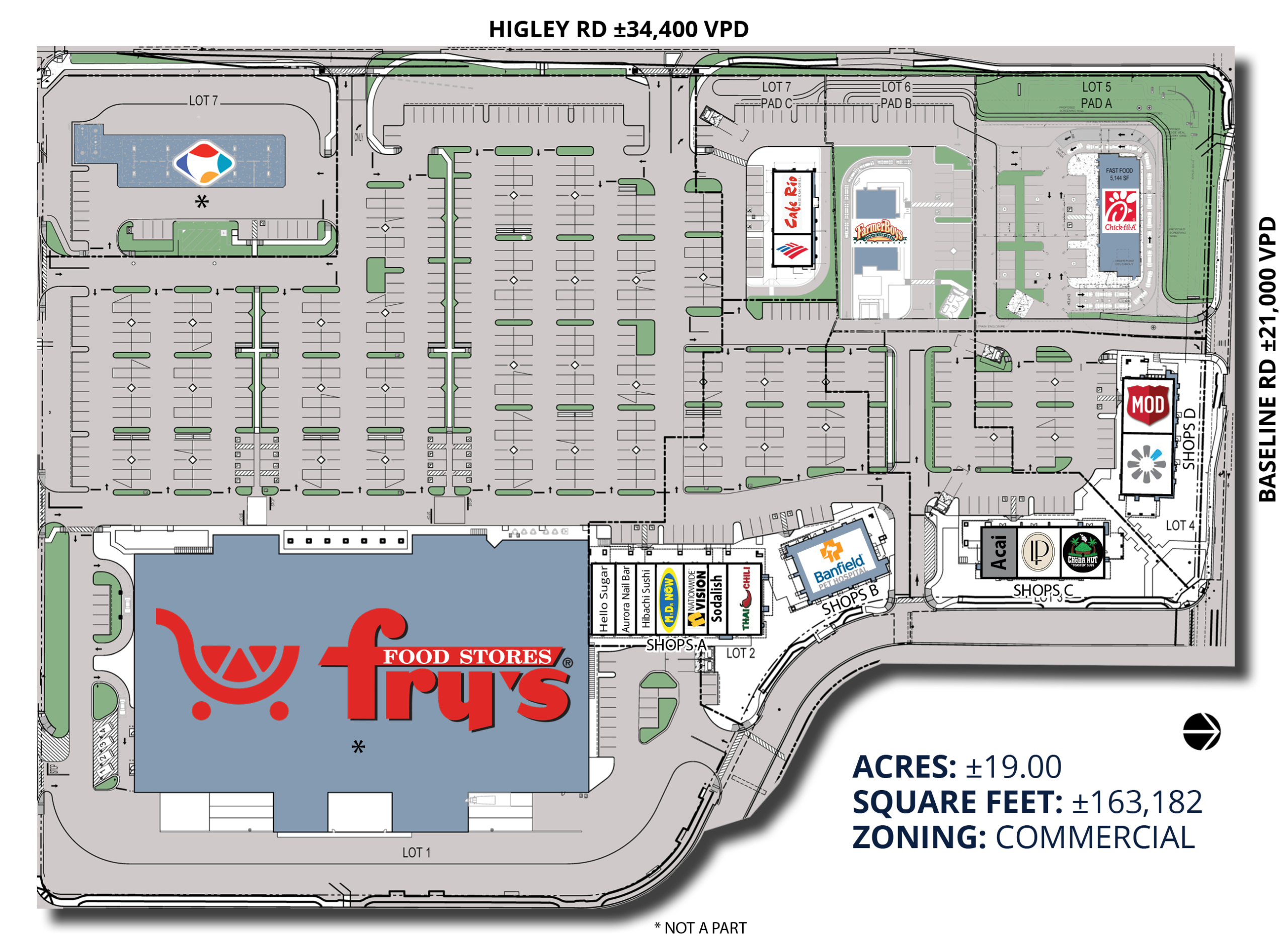 Located on the southeast corner of Baseline and Higley in Gilbert, Arizona this Fry’s Marketplace anchored center will serve as the new key retail component of this growing corridor. This 19-acre center will provide more than 163,000 square feet of retail space for the area.