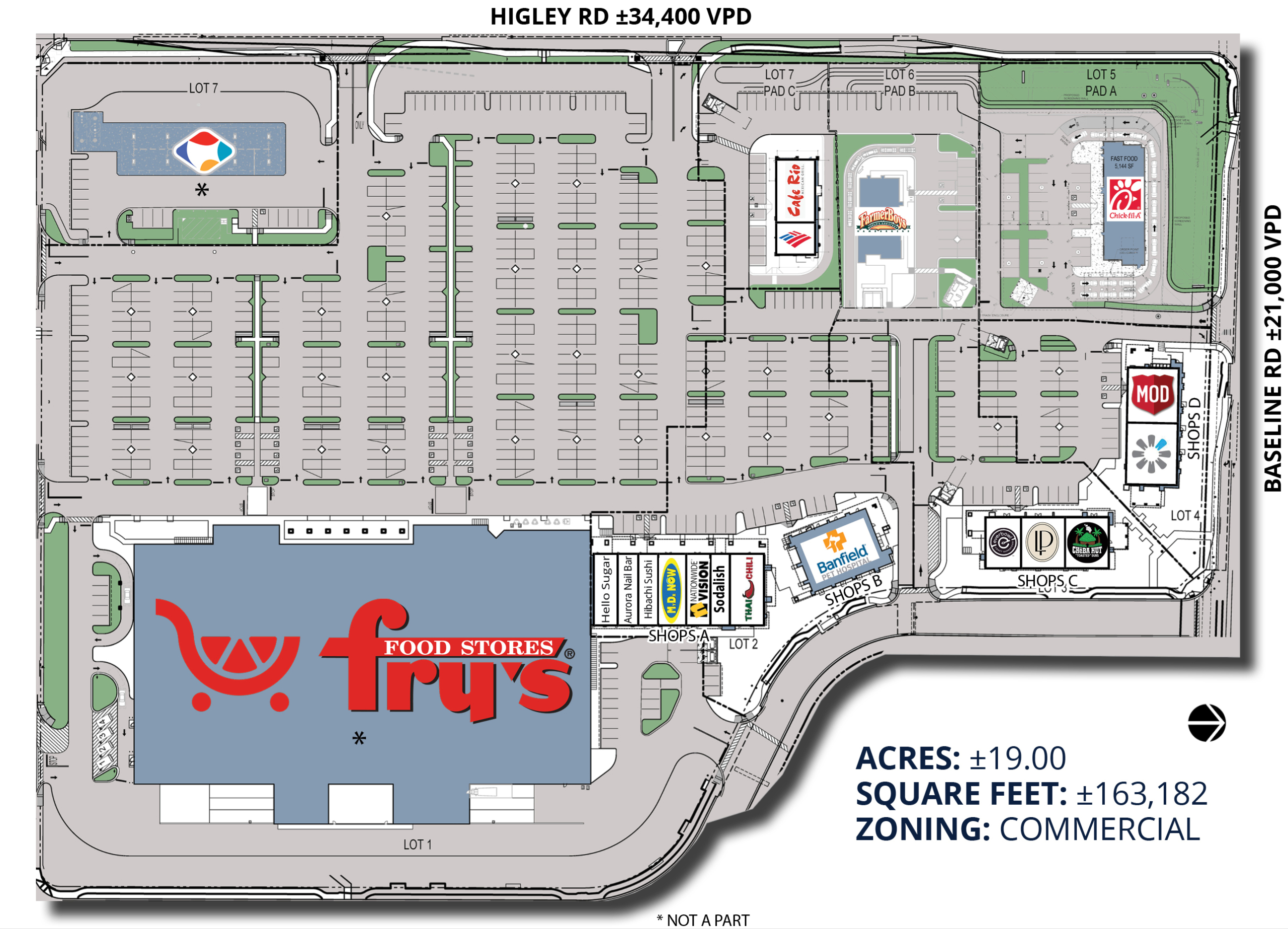 Located on the southeast corner of Baseline and Higley in Gilbert, Arizona this Fry’s Marketplace anchored center will serve as the new key retail component of this growing corridor. This 19-acre center will provide more than 163,000 square feet of retail space for the area.