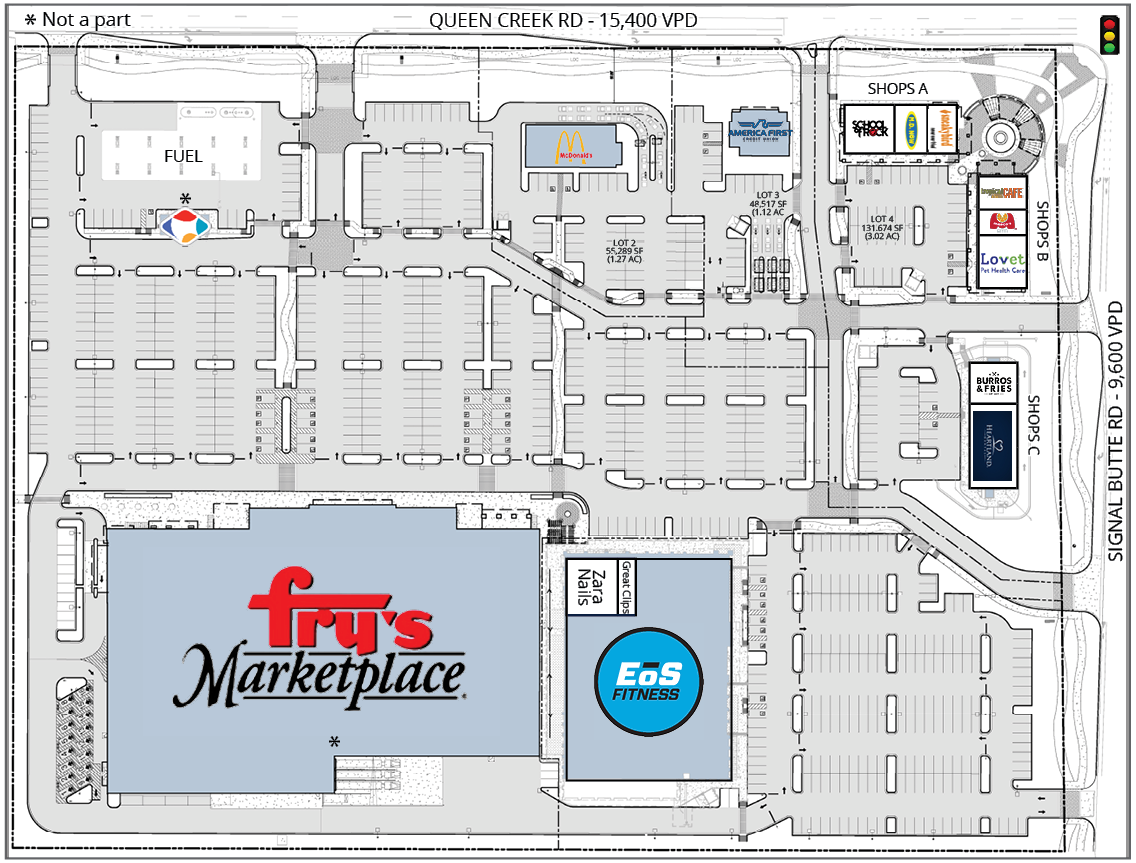 Located in the rapidly growing community of Queen Creek, Arizona, this grocery anchored center’s 5-mile trade area boasts an average household income of over $100,000 and a population in excess of 130,000. In addition, there are over 60,000 housing units slated to begin construction within the trade area in the near future.