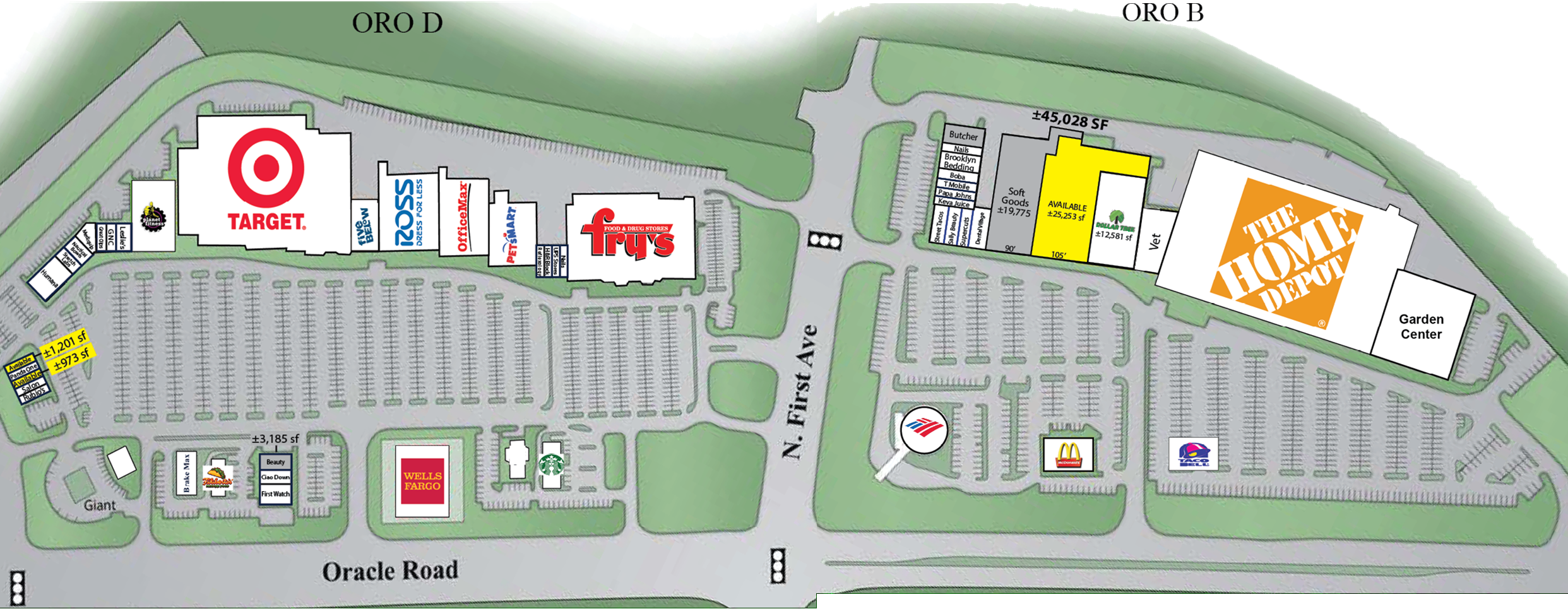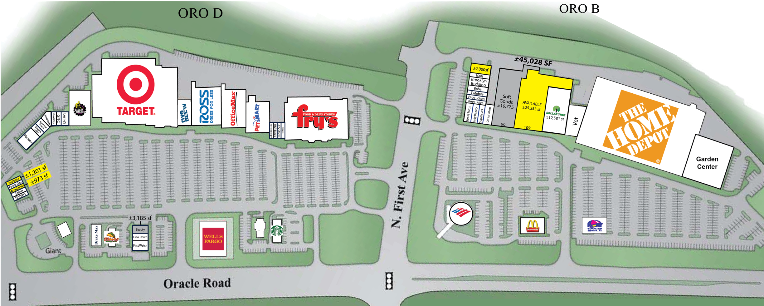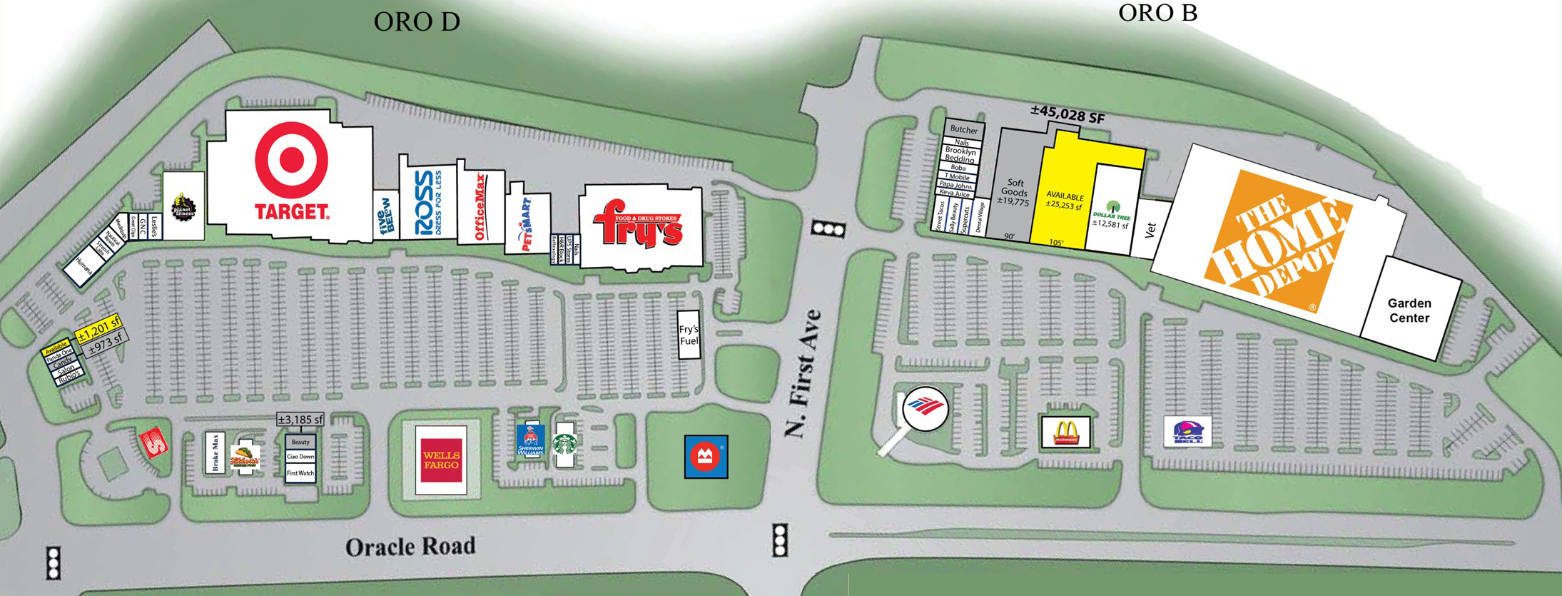Rooney Ranch is located on the intersection of Oro Valley’s primary north/south arterial, Oracle Rd (State Route 77) and First Street with combined traffic counts equaling 97,000 vehicles per day. The center boasts an average household income in excess of $100,000 with a residential population of 68,000 and a daytime population of 52,000. Rooney Ranch is close to El Conquistador, a 4-star resort destination, Honeywell, and San Dorado, a new 247 unit Mark-Taylor luxury community is located across the street from the center.