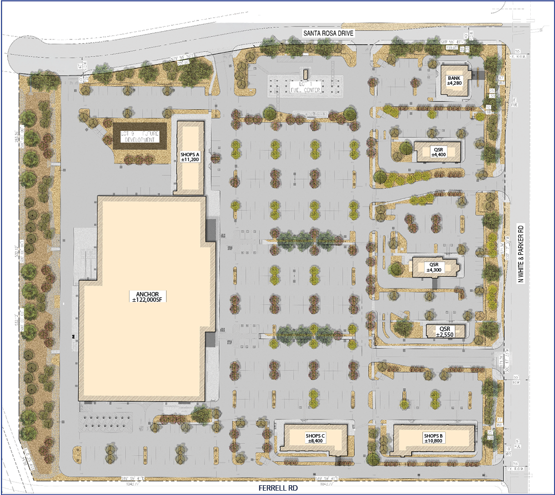 - Prime grocery-anchored shopping center situated at the high-visibility corner of White and Parker Rd and Ferrell Rd in Maricopa, AZ, offering excellent accessibility and traffic exposure.